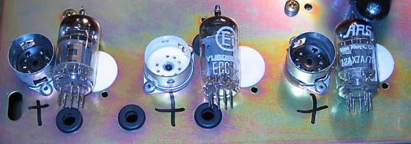 La ausencia de capuchones en las válvulas de previo y el que dos de ellas sean chinas (SINO), una de ellas reetiquetada como "ARS", cuando todas las otras son Ei me hace pensar que este ampli haya sido "manipulado"
