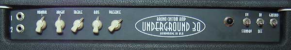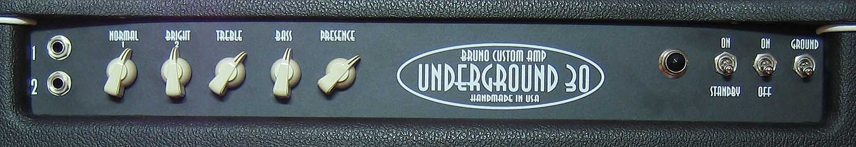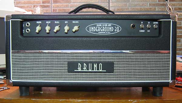 En esta ocasión se trata de un ampli muy especial y exclusivo, hecho a mano personalmente por el diseñador Tony Bruno en su taller Bruno Amps de Nueva York. Este ejemplar en concreto es el modelo más simple y más vendido de la gama Underground-30 que incluye otros modelos con Reverb y/o trémolo tanto en formato cabezal como combo de 1x12" ó 2x12" o el hipercarísimo 10Th Anniversary Underground-30, con sus válvulas Mullard N.O.S. (emparejadas en las de salida), reverb y trémolo a válvulas y mueble de maderas nobles.