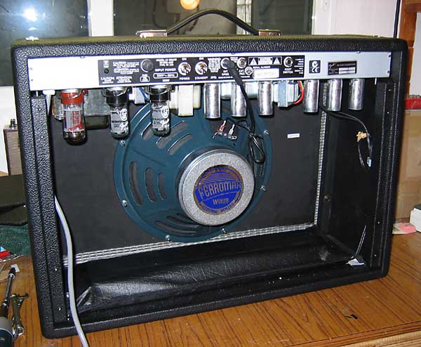 El resultado es estupendo. Mucho más "claro" que el Jensen de ALNiCo y en la onda del Jensen Cerámico pero con más cuerpo y presencia. Los graves son fantásticos y no se "ahogan" tanto como con el original a alto volumen. Una compra muy acertada. Sin embargo hay un "pero"... el circuito original hace que este altavoz suene demasiado brillante en agudos con un tono un tanto "chirriante" en el canal de vibrato. Para darnos cuenta de lo bien que suena este nuevo altavoz hay que enchufarse al canal normal en el que desaparecen estos agudos desagradables. El problema ya ha sido documentado en internet y es que el circuito de tonos/volumen del canal normal y el del canal "vibrato" son idénticos excepto por un pequeñísimo detalle: el potenciómetro de volumen del canal "vibrato" tiene un