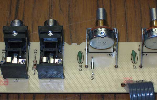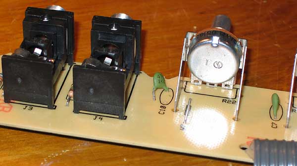 en la sub-placa verde que porta los potenciómetros y jacks...
