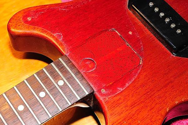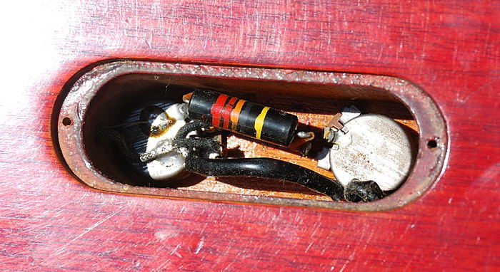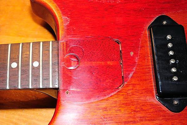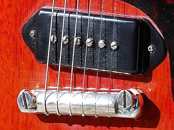 En él destaca la única pastilla P-90 con carcasa de plástico de tipo dog ear, toda ella original y con un sonido fantástico, asombrosa calidez y garra al mismo tiempo. Te hace pensar que si una guitarra como esta con esa perfección de sonido era "la de principiante"... ¿como serían las burst que eran 100% profesionales?