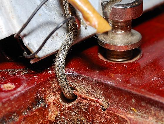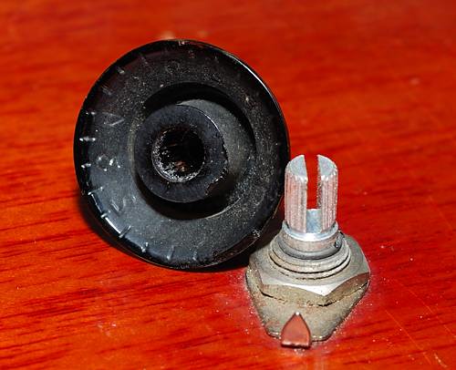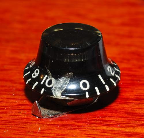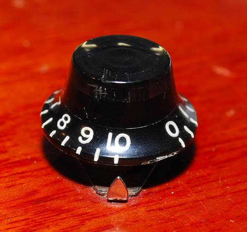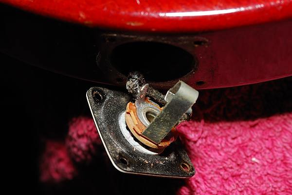 Los potenciómetros no tienen fecha visible desde esta posición. En realidad se trata de potenciómetros Centralab (código 134). No los he sacado para no interferir en una circuitería que nunca ha sido tocada pero son análogos a este que también pertenece a una Les Paul de 1959: