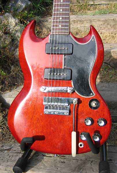 Usado en directo por Pete Townsend con The Who en la época del famosísimo album "Live at Leeds", del '68 al '73 más o menos aunque más bien se trataba del modelo inmediatamente posterior a este, del '66 en adelante con el golpeador grande, que luego reeditó Gibson como el modelo Pete Townsend Signature SG (que venía con dos estuches, uno normal y otro "Fly Case"), aunque también usó (y machacó) algunas de este tipo. Lo que casi siempre tenían en común era que les quitaba la vibrola y ponía las cuerdas "wraparound" en el cordal