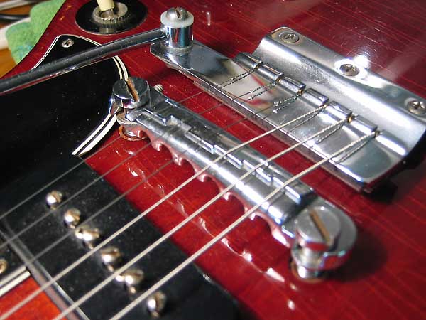 Detalle delpuente. La Vibrola es del tipo corto. Aunque lleva el mismo mecanismo