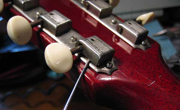Clavijeros Kluson 3-en-1 típicos de estas guitarras.