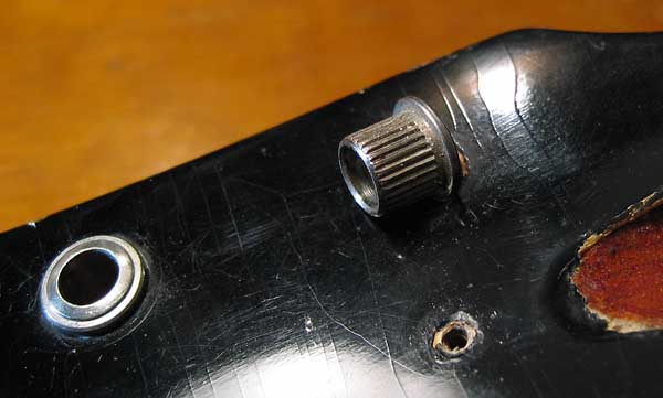 Este clavijero se ha llevado un buen golpe, torciendo la clavija y deformando la caja.