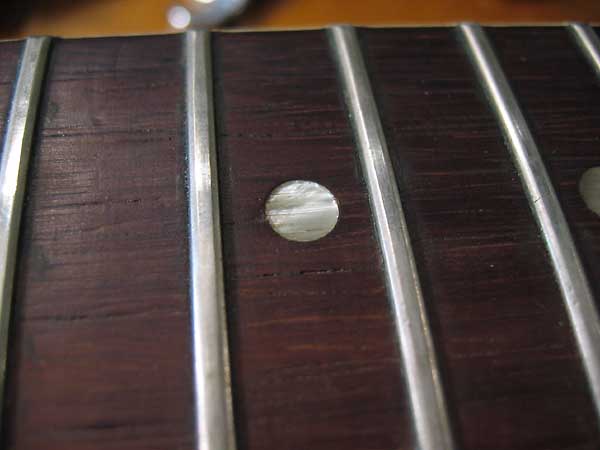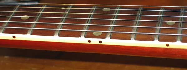 Trastes "chatos" también típicos Gibson y marcadores "perloides".