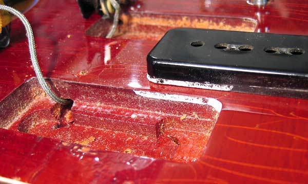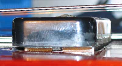 Detalle de la pastilla de puente. Exageradamente altas las piezas polares.
