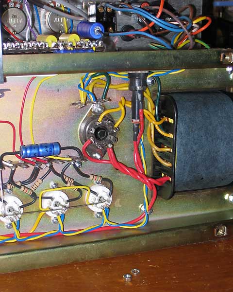 Detalle de potenciometros, toma eléctrica, fusible y selector de tensión.