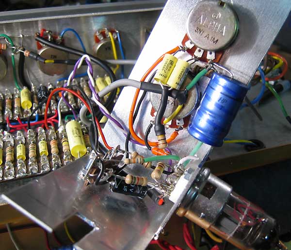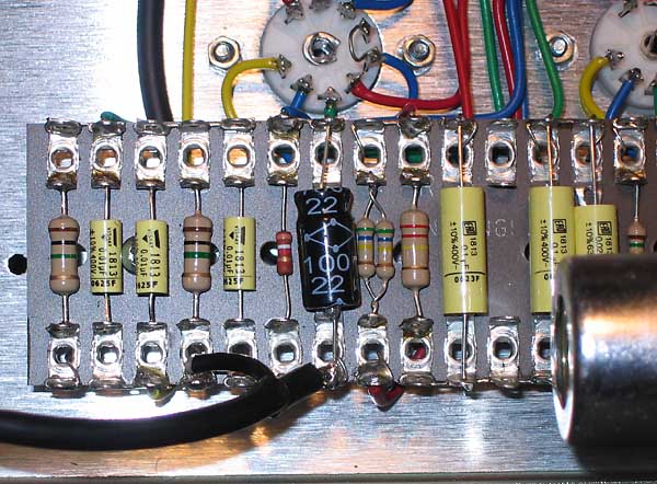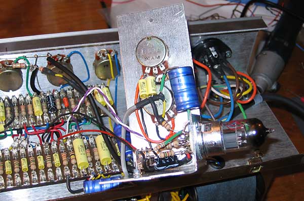 Aquí vemos la quinta ECC83 en la subplaca de control de tono.