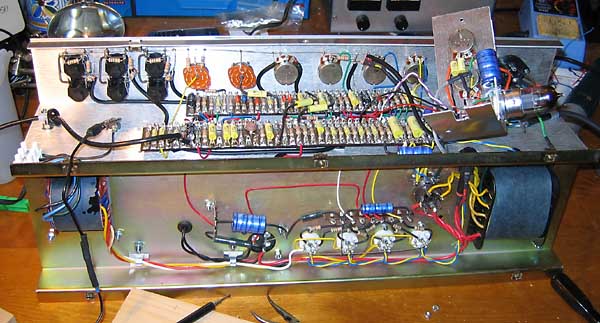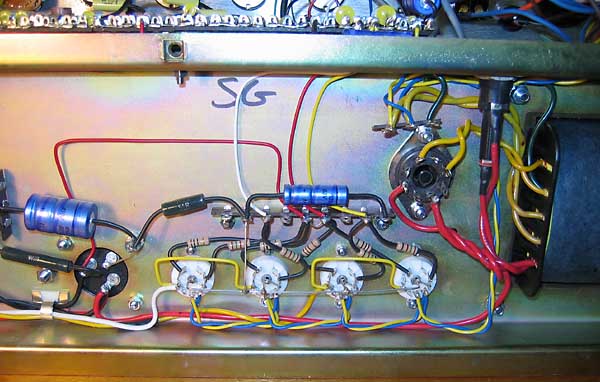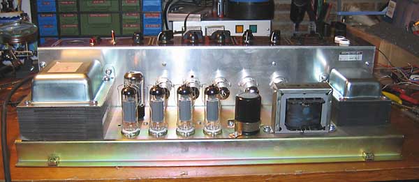 El chasis fuera del ampli. Las válvulas, todas JJ, son: