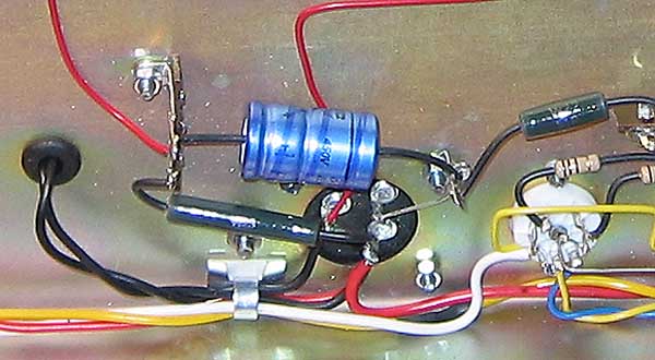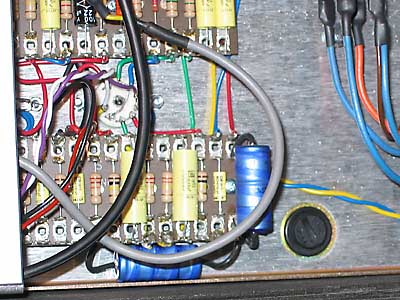 Encima de él otro condensador de filtro que nos dió muchos problemas...
