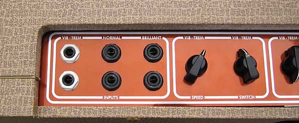 Detalle de las 6 entradas y de los dos conmutadores del "Vib-Trem"