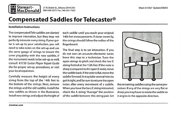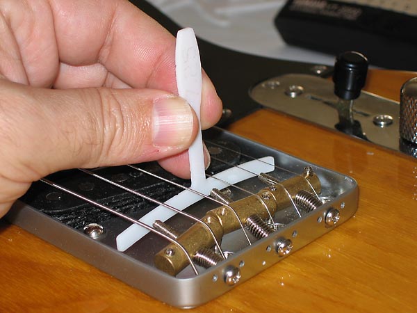 Como ya dije antes, aproveché el desmontaje de la Telecaster para instalar unas nuevas silletas compensadas. Como ya sabéis, las silletas de latón de toda la vida que, en mi opinión, son las que mejor suenan de todas, tienen el problema de que "quintan" las cuerdas de dos en dos por lo que nunca se puede hacer a la perfección. A pesar de que las silletas que llevaba originalmente mi Telecaster "quintaban" bastante bien, decidí dar el cambio.