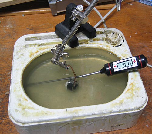 Al probar el wah me dí cuenta que no solo se escuchaba el efecto "wah" sino que se oía perfectamente la fricción del propio pedal contra el eje y la del mismo potenciómetro al girar. En efecto, con el wah activado si pasabas una uña por la superficie pintada del wah oías perfectamente el crujido por el amplificador. Estaba claro que el inductor era muy microfónico. Esto es algo inusual en este tipo de componentes pues se "potean" con barniz, resina o cera para evitar este problema. De hecho el inductor parecía tener una capa de barniz sobre el bobinado. Poniéndome al habla con Pacop me confirmó que el suyo no tenía este problema así que el mío debía haber tenido algún fallo de fabricación en este sentido. Afortunadamente tengo un invento para poder hacer