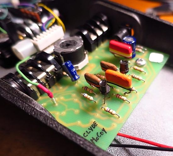 El esquema si bien es muy similar al típico de cualquier wah del tipo VOX-Crybaby tiene ligeras diferencias. En la web dedicada al Clyde McCoy de Fuzz Central podréis encontrarlo así como fotos de un original e informaciones varias incuyendo placas de circuito impreso.