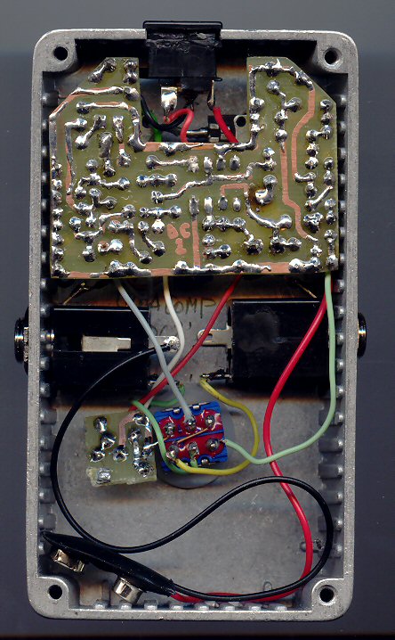 La idea la saqué del Compresor Boss CS-2 y la he puesto en todos los compresores que he tenido hasta ahora con un resultado más que aceptable. Tengo un compresor original Music-Son y un original Loco Box CM-01 "The Choker". El primero es una copia descarada del MXR. Es curioso que Music-Son fabricase en Valencia dos pedales de efectos para guitarra copiados desvergonzadamente de MXR. El otro al que me refiero es el Phase 90 en su versión más antigua (la que utilizaba 6 integrados 741), del que ya hablaré en alguna otra colaboración. La circutería del segundo también se parece MUCHO a la del Dyna Comp, aunque dispone de un conmutador electrónico.