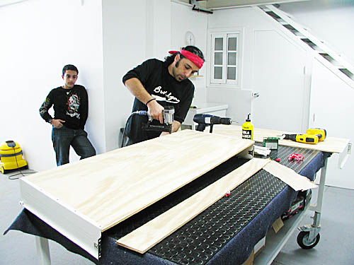 tarea de hacer DOS muebles. Uno para sus guitarras y otro para las mías. Trabajar en equipo es más rápido y menos fatigoso