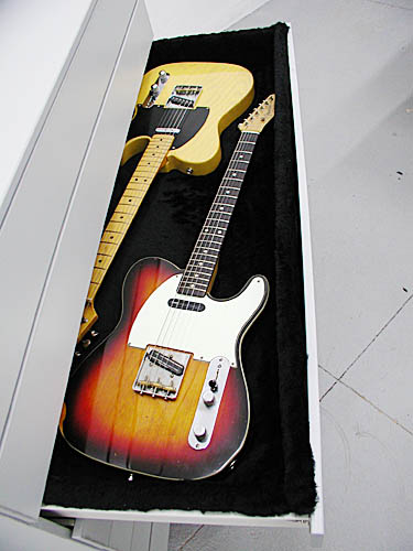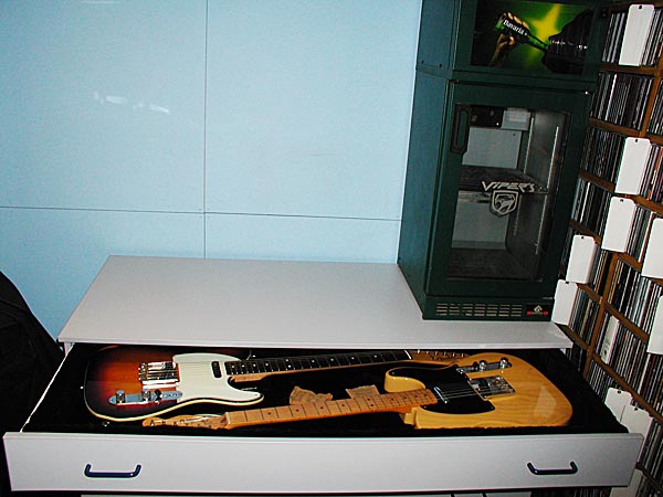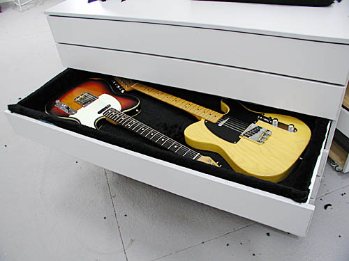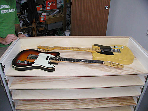 En esta otra foto vemos a modo de prueba cómo colocaríamos dos guitarras tipo Fender en cada cajón:
