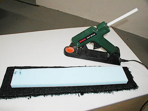 Para los laterales nos resultó en cambio, bastante más cómodo y rápido el utilizar una pistola de pegamento termofusible como esta: