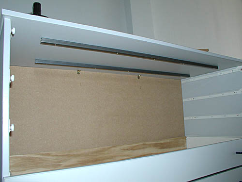 Y ahora veamos un par de detalles de un cajón montado, a falta de colocar el panel frontal. Vemos así como funciona el sistema de rail: