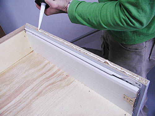 Se observa perfectamente el perfil lateral del cajón metido en su rail. Una vez coloquemos la encimera sólo resta colocar el frontal de cada cajón y los tiradores para tener el mueble completamente montado.