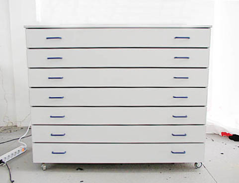 Hay que montar los tiradores antes de forrar cada cajón, pero aún así no pudimos resistirnos a hacer una prueba más para ver que todo encajaba según lo previsto, metiendo de nuevo dos telecas en uno de los cajones: