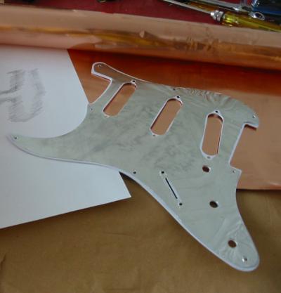 Para realizar el apantallado, me leí bien la pagina de guitarnuts que explica muy bien el proceso y que os recomiendo que leáis. Lo primero es conseguir papel de aluminio gordote, no el típico de los rollos de cocina. Si os leísteis el artículo de Rubén sobre la Tele, veréis que usaba una bandeja Albal, aunque yo las que vi por los supers de mi barrio eran demasiado pequeñas, igual servía para el golpeador de una Tele, pero no para el de una Strato, que es mas grande. Calambres me comento que en los Carrefour hay, así que me fuí a uno y compré. Ironías del destino, cuando llegue a casa, mi compañero de piso me comentó: "Coño! Pero si eso tenemos en la cocina!". Y efectivamente, encima de un armario habia un par de bandejas exactamente iguales a las que había comprado. En fin...