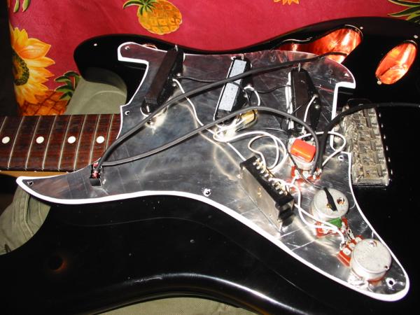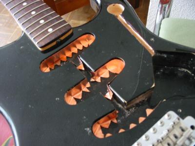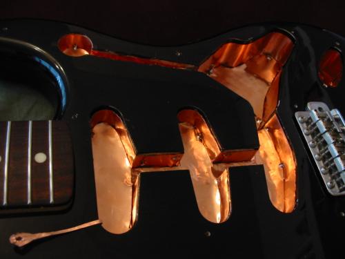 Bueno, dejando aparte ese rollo, como quería instalarle la historia esa pues de paso le hacía un apantallamiento brutal a la guitarra y la dejaba fina fina...