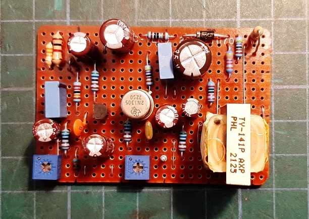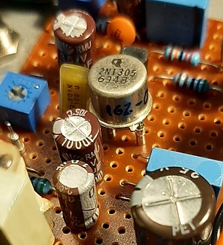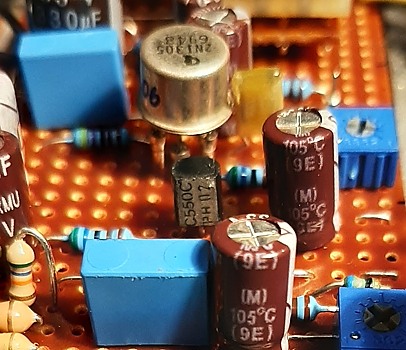 El transistor de Germanio que lleva el Broadcast ha variado mucho con respecto al tiempo. Se sabe que llevaron OC41 y OC71, 2N404A y alguno que otro más. Esto, como sabemos de otros montajes de por aquí, tiene poca importancia. Recomiendo usar unas ganancias moderadas, de entre 100 a 200 de hFE más o menos, bajas fugas y, sobre todo, ajustarlos a "oreja", eligiendo el ejemplar adecuado entre los que tengamos como hacíamos con los fuzzes (ver artículos del Fuzz Face, del Buzzaround, o del ULE).