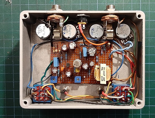 Se trata claramente de un previo pero con carácter. De hecho puede tener mucho carácter según lo ajustemos (¡esos trimmers!) llegando a fuzzear si así lo deseamos, pero no es ese su terreno ideal ni mucho menos. ¡Esto no es un Fuzz! Digamos que va desde un Boost transparente pasando por un Overdrive bastante claro hasta llegar a terrenos de distorsión. Es un circuito muy "afinado" en el sentido de que sus componentes están muy bien estudiados para que todo se ajuste progresivamente. Esos trimmers pueden cambiar mucho el carácter del pedal como ya veremos y los dos "modos" se pueden ajustar justo como queramos. Una vez puesto a nuestro gusto es un pedal que dejas enchufado y no lo quieres quitar nunca más. La salida puede llegar a ser mucho más alta que la entrada con unos niveles de amplificación muy notables, si es que así se desea, claro. El que lleve volúmenes independientes para cada modo es muy de agradecer.