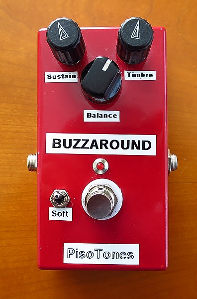 No se trata de un Fuzz "al uso"... es bastante peculiar y el sonido es fantástico. En serio que mi buzzaround ya lo ha probado más gente y todos se han quedado sorprendidísimos de cómo suena. Escuchad los primeros discos de King Crimson y os haréis una idea de cómo suena este pedal con una buena Les Paul y, como ya he dicho antes, con P-90 es asombroso cómo las hace "cantar".