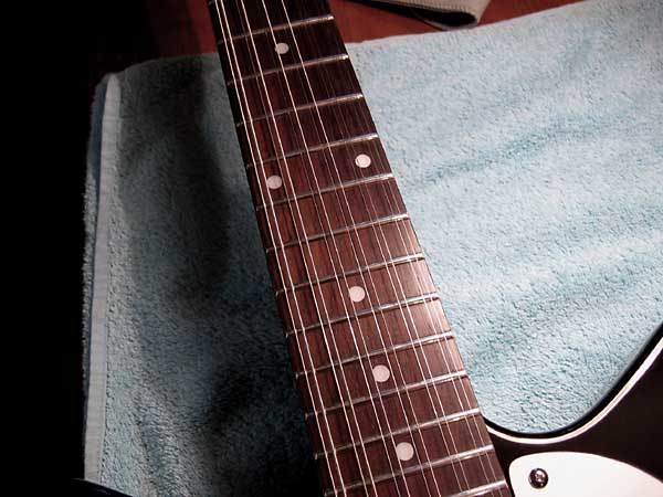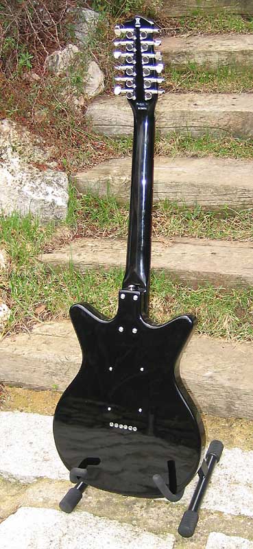 Para los que estamos acustumbrados a tocar con guitarras de 6 cuerdas se hace un poco raro al principio. Como tiene las cuerdas de octavas "por encima" de las normales, para que suenen ambas en los punteos has de andar con ojo y tocar "hacia abajo" hasta que le pillas el truquillo. Curiosamente, en las Rickies es justo al revés. El método de las Rickenbacker facilita el tocarlas con las uñas.