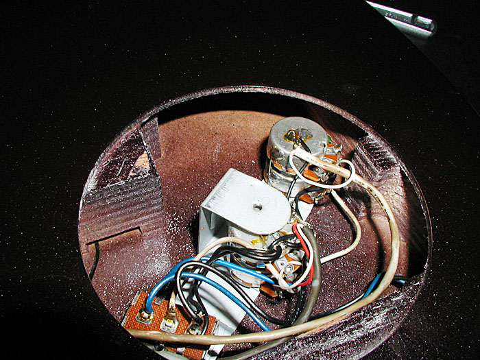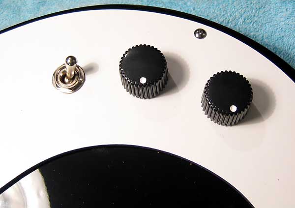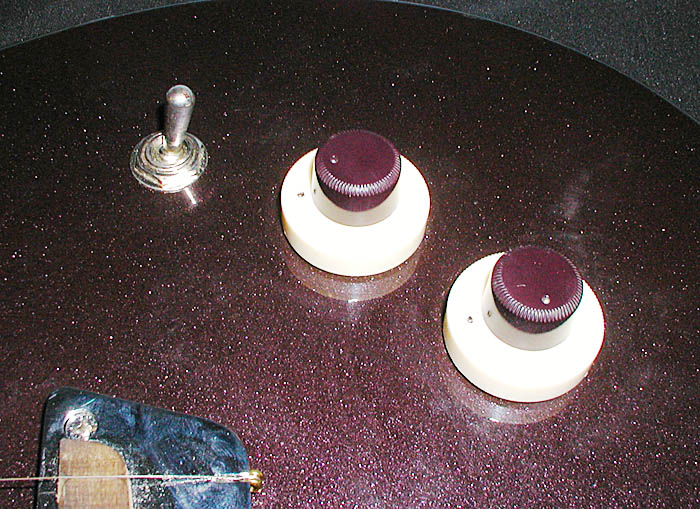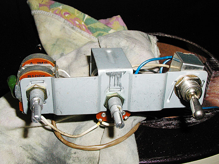 Los controles de volumen y tono no tienen nada que ver con los originales. En este caso hay un volumen general y un tono general cuando la original llevaba dos volumenes y dos tonos con potenciómetros y botones concéntricos: