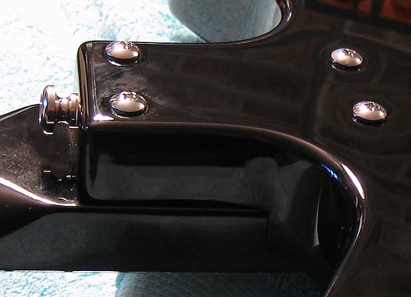 El ajuste de altura de las pastillas es, como ya vimos más arriba, un sistema muy ingenioso con los tornillos por detrás lo que hace que no se vean por delante y afeen el conjunto y por otra parte que no sea necesario levantar el golpeador como en las Telecasters, por ejemplo. Sin embargo no lo han hecho del todo bien en esta reedición.