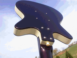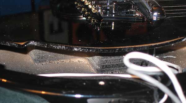En la última foto, fijáos bien en el golpeador con la famosa forma de "Seal" (foca) como en la original aunque con dos diferencias: el jack y el tornillo central. En las originales el jack estaba en el propio golpeador y en las reediciones está en el borde del cuerpo en una posición, por cierto, bastante incómoda para poner la guitarra en un soporte de pie aunque, eso si, con una fijación mucho más robusta ante los tirones de cable. En cuanto al tornillo, en la original estaba puesto en la mitad del golpeador y no en el borde como en las reediciones: