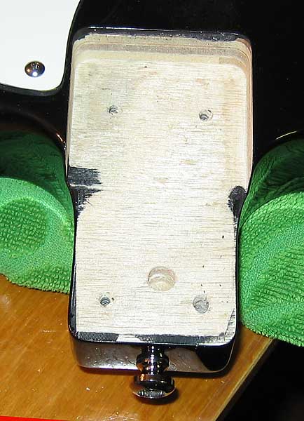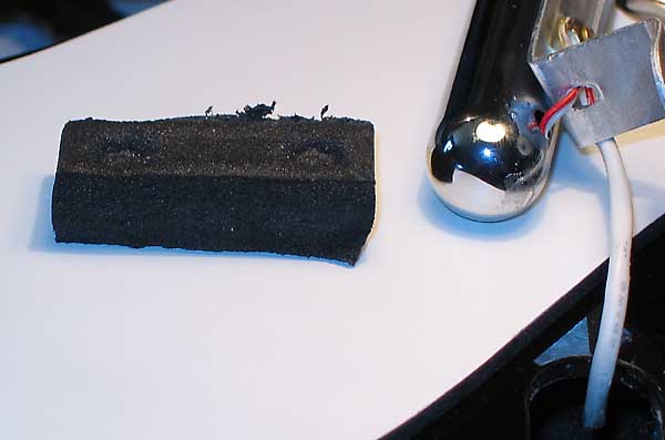Como ya he dicho, siguiendo los consejos de Dan Erlewine además de estos muelles hay que poner unos sustitutos a la gomaespuma que hemos quitado pero de mucha menos densidad. Se trata de que sujete levemente las pastillas para que no vibren pero no que se queden demasiado comprimidas como antes. Una vez hecho esto ya podremos ajustar la altura de las pastillas a nuestro gusto sin que los tornillos nos queden fojos por detrás.