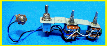 El truco de este esquema está en el switch. No es el típico switch asiático que traen las copias de Gibson. Aunque físicamente son idénticos (excepto por el actuador todo metálico) no tienen nada que ver por dentro ya que los normales son On/On/On y este es On/Off/On, esto es, en la posición intermedia no hay ningún contacto eléctrico entre los tres terminales. Si os fijáis en el esquema veréis que justo por eso en esta posición las dos pastillas quedan en serie y no en paralelo como nos acostumbran Gibson, Fender, etc. Debéis tener mucho cuidado con el switch ya que será difícil conseguir un repuesto. Afortunadamente este tipo de switch es también el que necesitamos para poder poner el cableado tradicional si así lo queremos. Switches del tipo Gibson los hay a patadas en internet pero de estos no he sido capaz de encontrar ninguno. La única solución a un posible switch roto que he encontrado es ir a Dan Guitars y encargar todo el conjunto de switch, potenciómetros, cableado y arnés para zurdos que lleva este mismo switch incluido pero, claro, es una solución bastante cara. No siempre lo tienen como repuesto. A fecha de hoy no existe sólo el switch como repuesto aunque algunas veces sí que lo he llegado a ver en Dan Guitars como repuesto independiente pero debe ser difcil de encontrar incluso para ellos porque normalmente no lo tienen disponible. En internet los podéis encontrar parecidos. Sólo tenéis que ir a Google y buscar por "SPDT On/Off/On" y los encontraréis, que seguro que serán de mejor calidad (el original no es gran cosa...) pero si queréis el "auténtico" y no lo tienen, tendréis que comprar todo esto, que normalmente sí que está disponible: