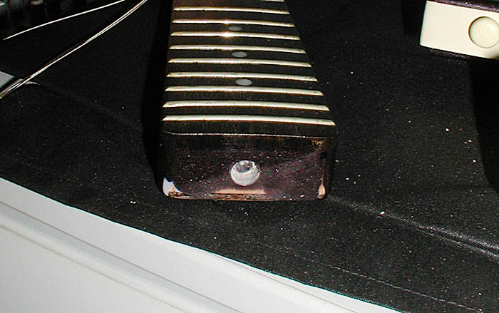 El agujero de acceso al alma es idéntico al que ya vimos más arriba de la U2 y se ajusta con una llave allen que, buen detalle, suministra el fabricante (también suministra la llave de ajuste de las silletas). Para arreglar el "backbow" hay que aflojar el alma y tal fué mi sorpresa al ver que al primer 1/8 de vuelta de la tuerca el alma quedó completamente floja... para volver a apretarse si seguía aflojando, esto es, el alma es de tipo