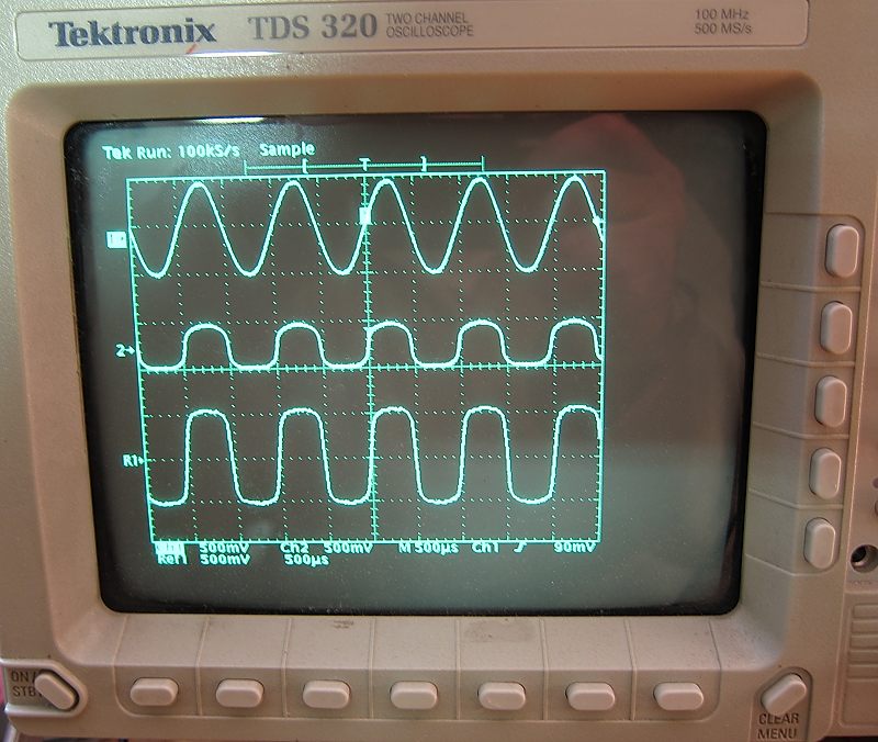 En efecto, para ver la diferencia entre el Dist+ y el 250 es bueno estudiar sus resultados al osciloscopio. En los siguientes oscilogramas veréis tres ondas: