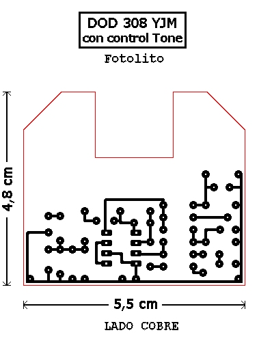 Intrigado por las posibles diferencias de sonido entre este montaje y el MXR Distortion+, siendo como son tan parecidos, me decidí a hacer este montaje cuando MBC me envió su artículo, usando el layout de IvIark que puse en el foro de guitarrista.com, sin control de tono y con el potenciómetro de Drive lineal, que da una respuesta lo bastante buena como para no necesitar meterse en el lio de buscar uno "Reverse Log":