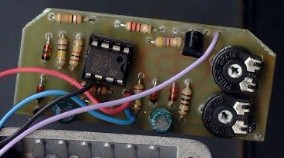 Nota del Calambres: A veces es imposible eliminar el pop-pop-pop del oscilador usando esos condensadores de 1uF del tipo electrolítico. No son fáciles de encontrar pero hay condensadores no polarizados de poliéster de ese valor y lo suficientemente pequeños para que quepan en este montaje. Sólo hay que buscar un poco. En cuanto a las resistencias, si queréis ser fieles al montaje original siempre podéis poner varias en serie y/o paralelo hasta llegar al valor deseado.
