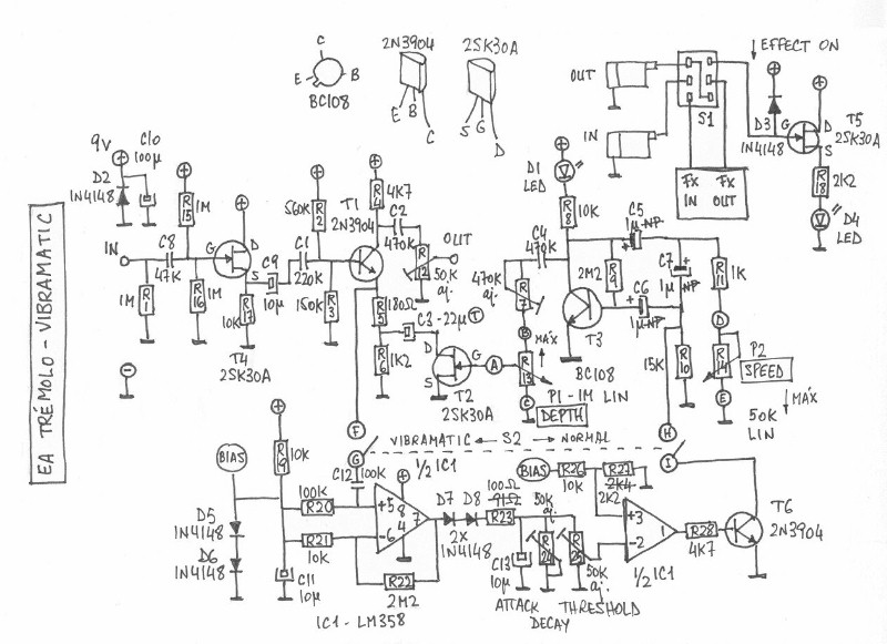 Ahora os cuento toda la historieta, pero vamos por partes. Este proyecto es un añadido al circuito del EA-Tremolo que encontraréis también explicado en el EA-Tremolo de Piso-tones Ltd.