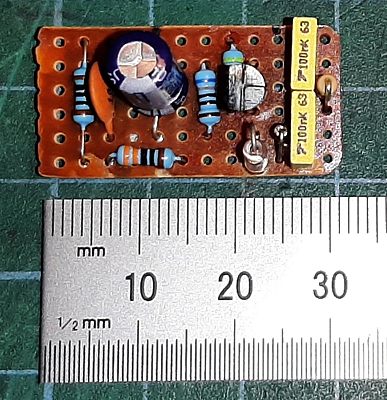 Como podéis ver, el único control que tiene es el de Volumen y la placa es tan pequeña que se puede sujetar mediante cinta adhesiva de doble cara (gruesa) al "culo" de dicho potenciómetro. En el esquema original del módulo de las guitarras Electra ni siquiera existía este control. Iban a "piñón fijo", que es más o menos lo que proponemos aquí pues el volumen no afecta a la cantidad de distorsión. En mi opinión el circuito tal y como está es ya suficientemente bueno como para no necesitar más cosas pero aún así en el siguiente capítulo veremos unas cuantas posibles modificaciones.