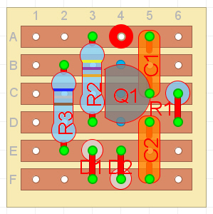 Los puntos verdes y azules indican donde se han de soldar los componentes.