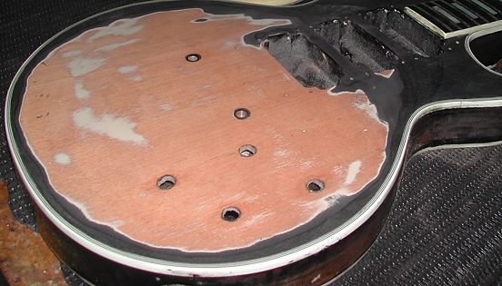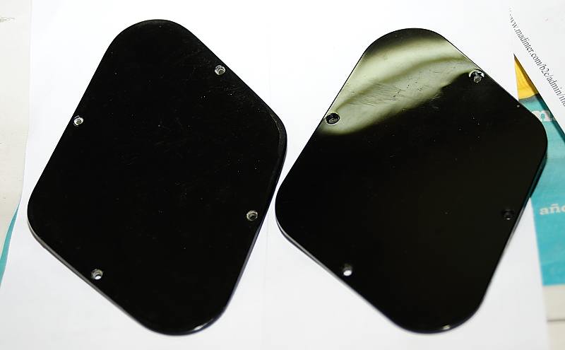 La guitarra traía puesta las tapas de plástico traseras nuevas de los años '90 conservandose las originales en el estuche. Las del '59 fueron reinstaladas tras la restauración.