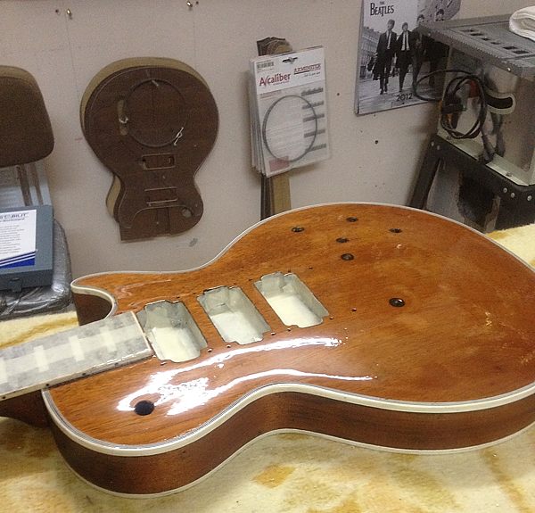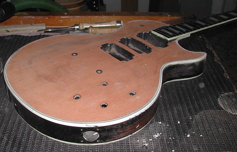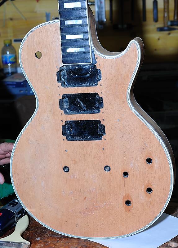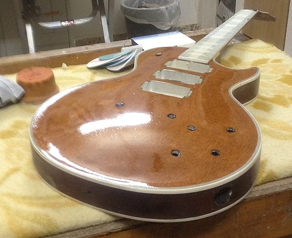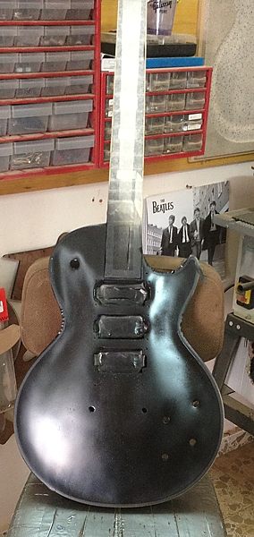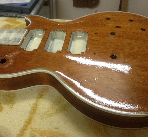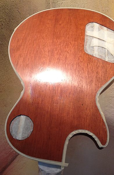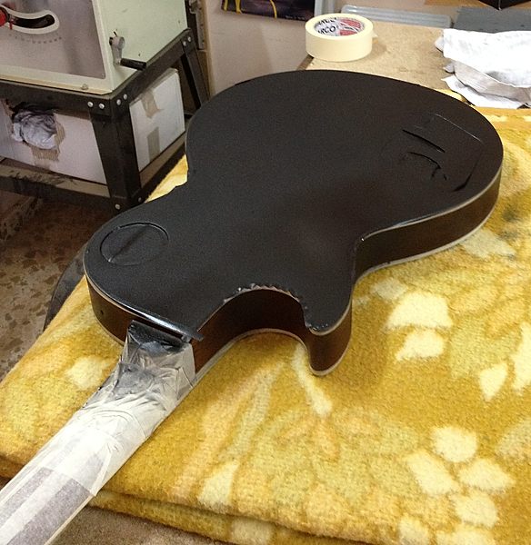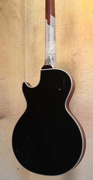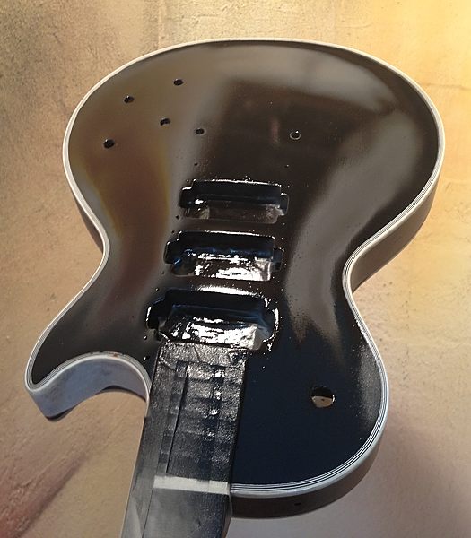 Cuando la guitarra quedó en la caoba desnuda Enrique llegó a plantearse el dejarla tal cual, para que se viera bien que no tenía ni roturas ni agujeros extra, por ejemplo de Bigsby, distinto clavijero, distinto puente, etc. Posteriormente y tras consultarlo con miembros del Les Paul Forum y MyLesPaul, la mayoría insistieron en que se le diera el acabado de nitrocelulosa en negro Black Beauty original pero, eso sí, documentando bien el proceso con fotos.