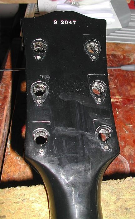 En cuanto al número de serie, se respetó el que traía la guitarra. No hay ninguna razón para creer que el número sea incorrecto pues el resto de la guitarra se corresponde con una de 1959. El que repintó la guitarra en poliuretano probablemente se limitó a copiar el número original del mejor modo que pudo. Desgraciadamente y como es bien sabido, los registros de Gibson de los años 58, 59 y 60 han desaparecido de sus archivos por lo que no es válida la opción de preguntarles por él.