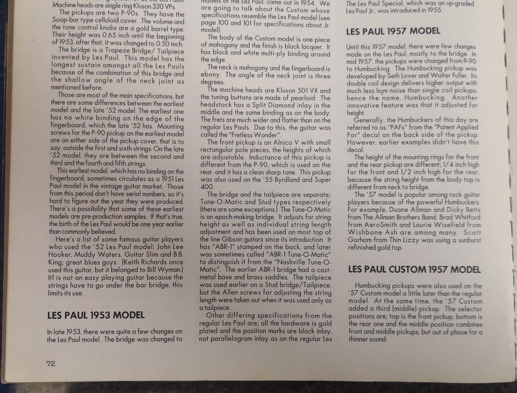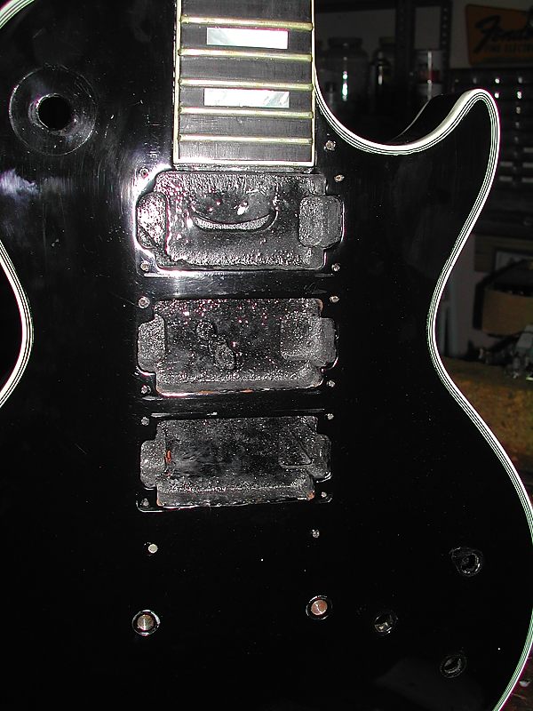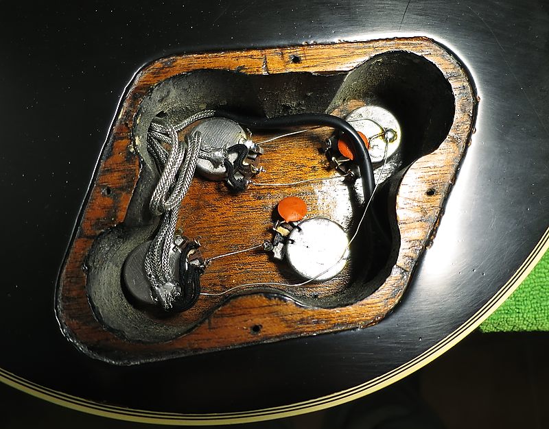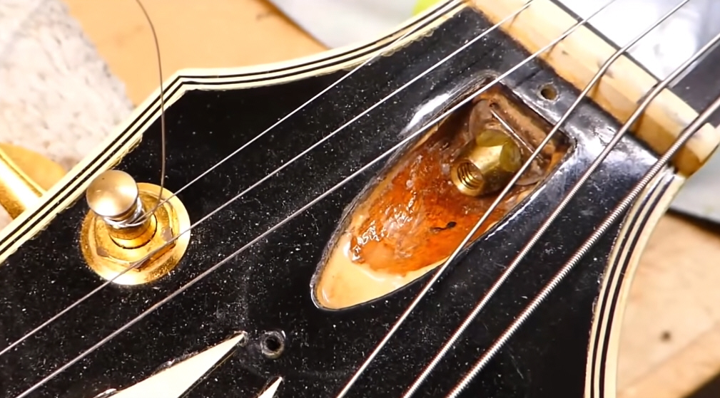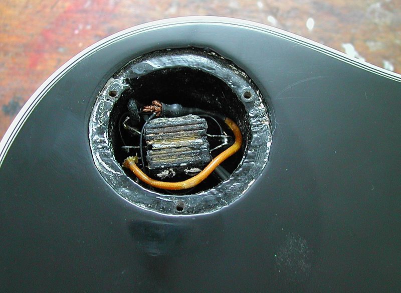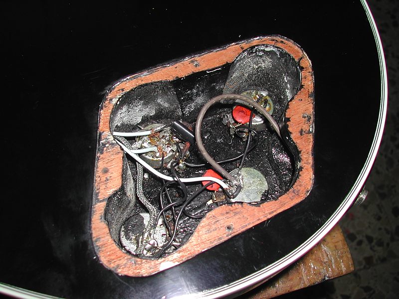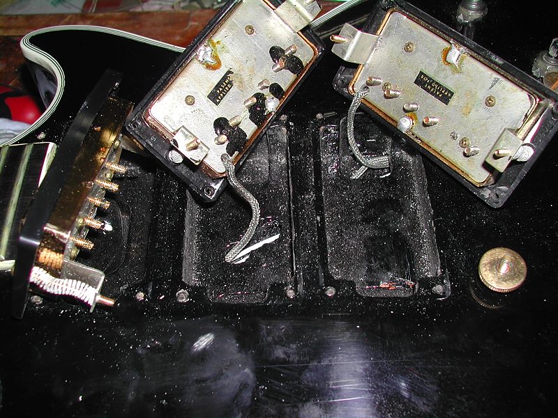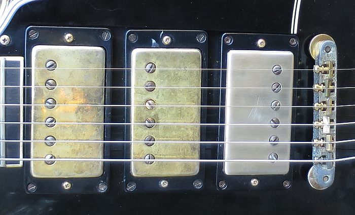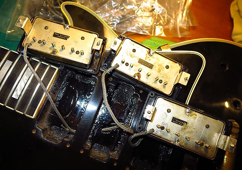 La guitarra tiene las 3 pastillas "PAF" (Patent Applied For) originales con sus cubiertas. Como se puede ver en la siguiente foto, la cubierta de la pastilla del puente no conserva nada del dorado original.