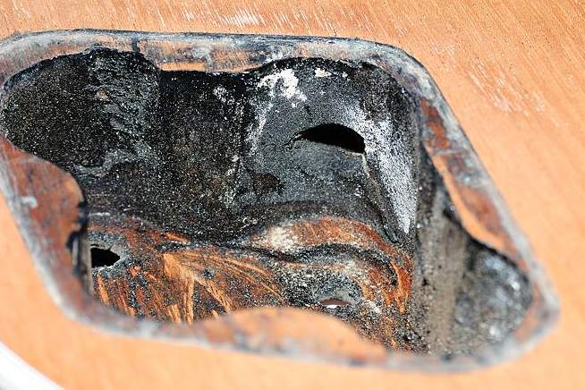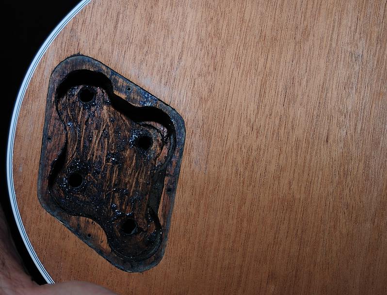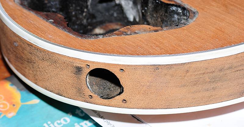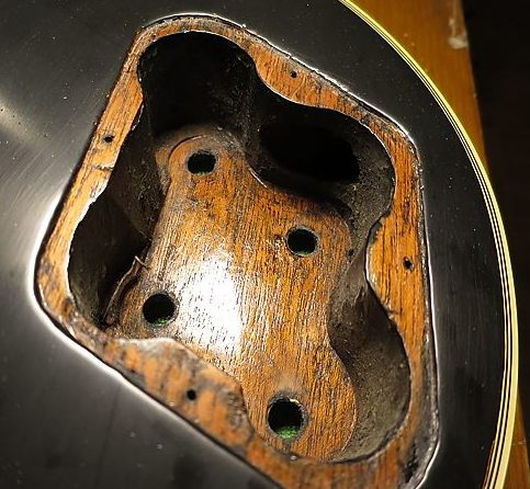 Como se puede apreciar claramente en las fotos anteriores y en las siguientes, la guitarra no ha sufrido de agujeros añadidos, modificaciones o roturas.